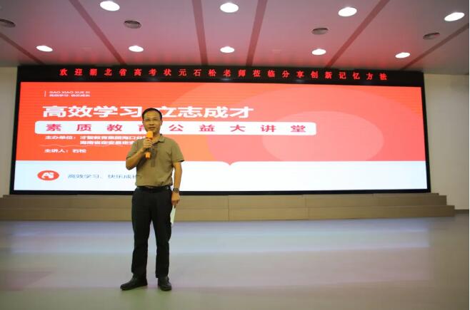 激发学习潜能、提升学习效率。学习的过程离不开记忆,记忆是掌握知识的重要手段。石松老师结合自己的成长故事,分享了如何高效学习、如何快速记忆知识点等方法,同时也分享了自己是如何考取湖北省2004年的高考状元之路,让同学们充满信心和力量。同学们也惊讶原来记忆还有这么多方法,学习还有这么多高效技巧,终于可以不用死记硬背,同时,也庆幸能有机会面对面高考状元,向状元老师请教学习。