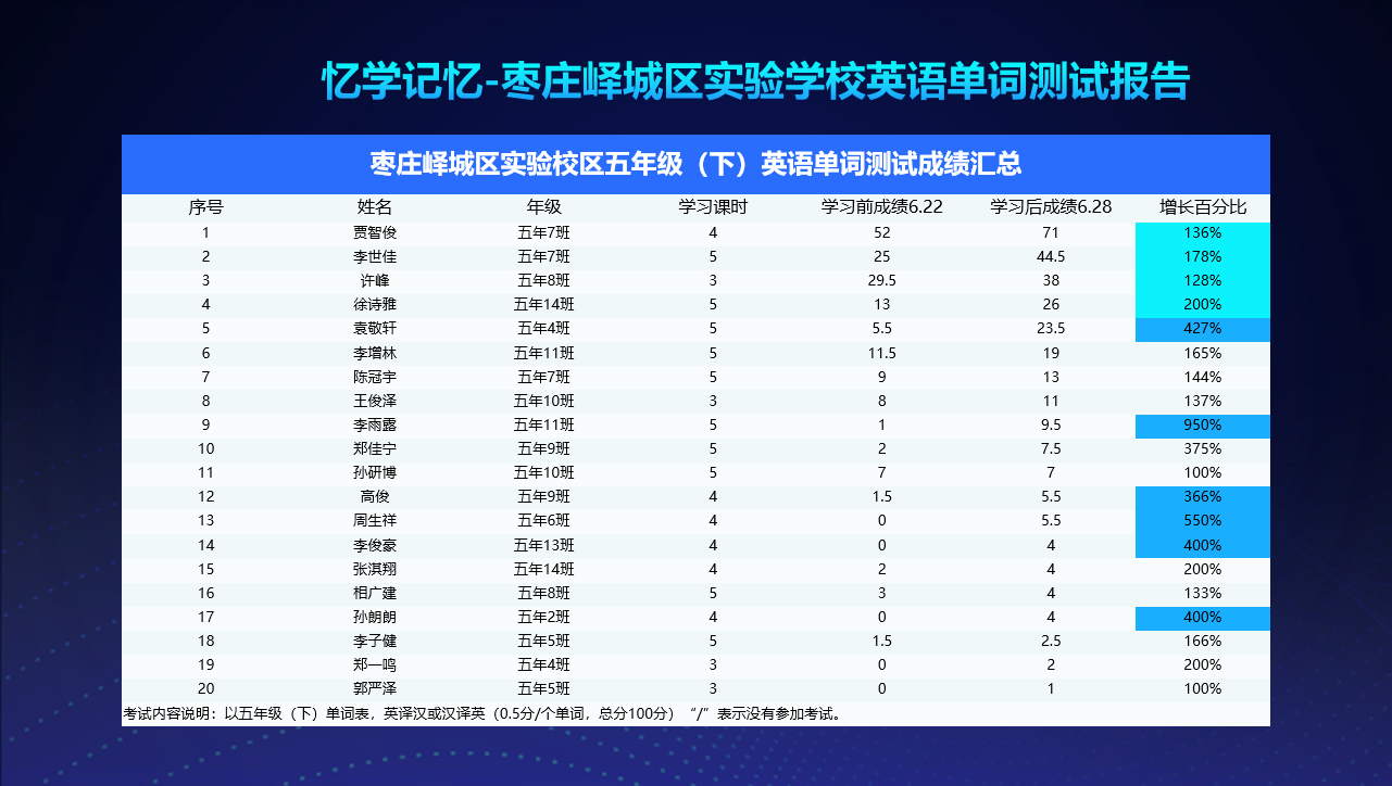 忆学记忆-枣庄峄城区实验学校英语单词测试报告