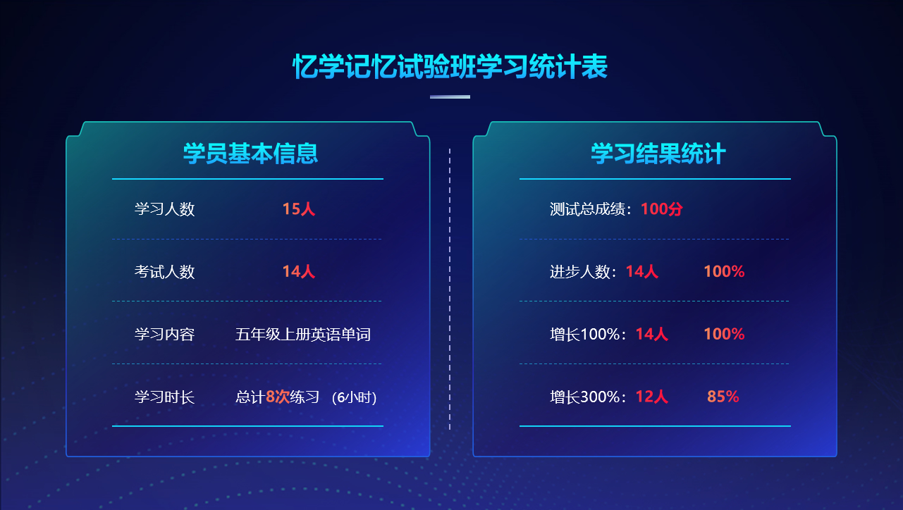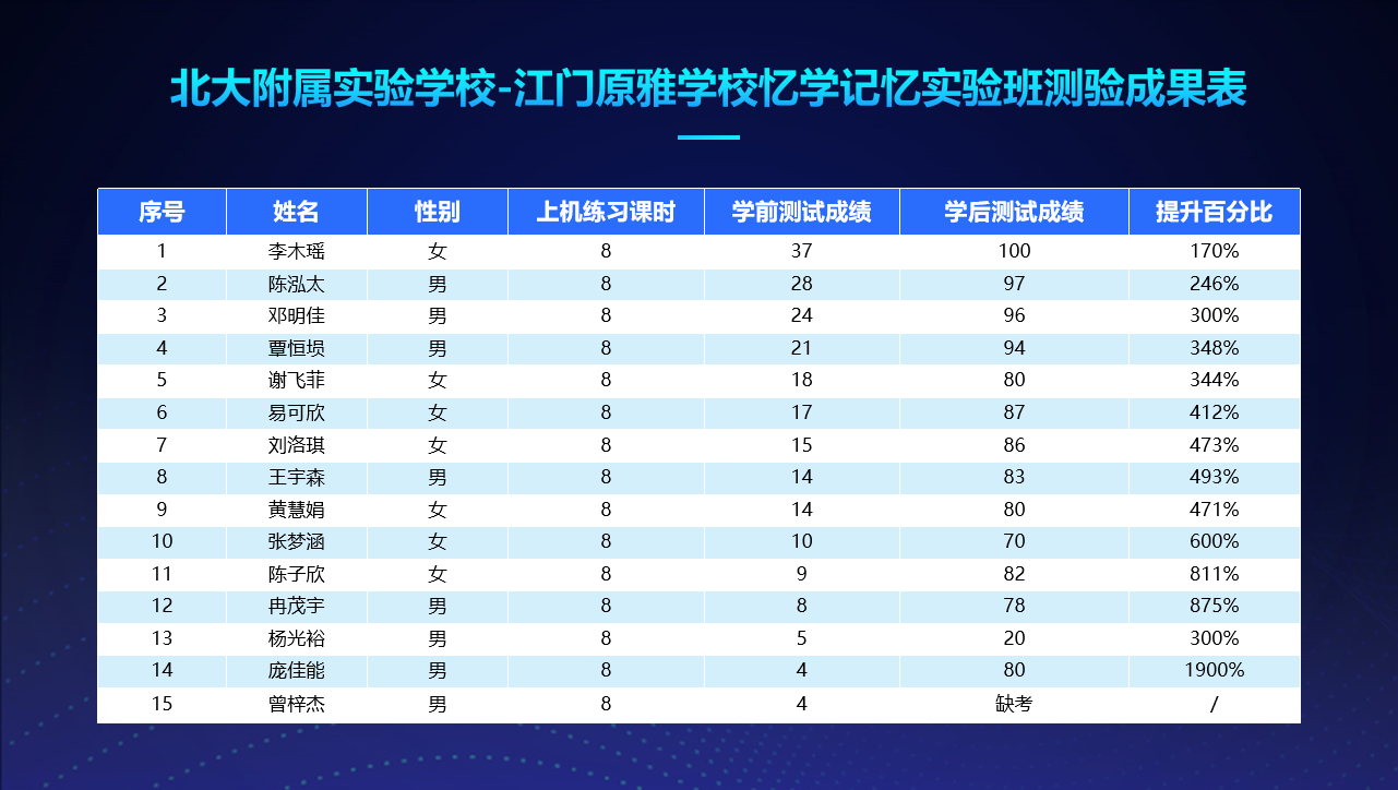 北大附属实验学校-江门原雅学校忆学记忆实验班测验成果表