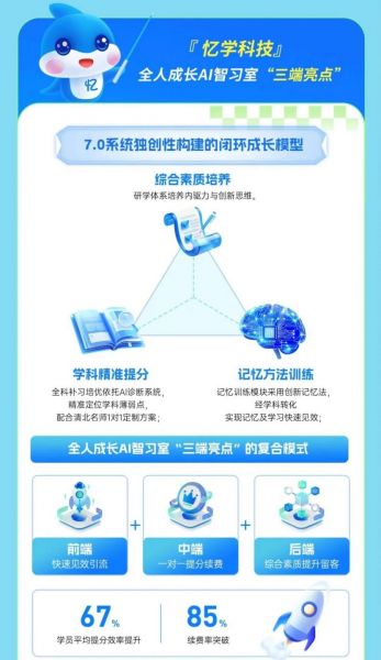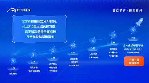 在历经全国23省试点验证后,7.0系统独创性构建"记忆方法训练-学科精准提分-综合素质培养"的闭环成长模型。记忆训练模块采用创新记忆法,经学科转化实现记忆及学习快速见效;全科补习培优依托AI诊断系统,精准定位学科薄弱点,配合清北名师1对1定制方案;研学体系培养领导力与创新思维。这种"短周期见效+中周期一对一提分+长周期成长"的复合模式,使学员平均提分效率提升67%,续费率突破85%。"传统智习室困局在于治标不治本。"忆学科技董事长刘家辉指出,"5.0时代仅聚焦学科补习内容,但80%学生存在根本性学习能力缺陷。7.0系统用记忆训练作'破冰尖刀',无需学科基础,快速让家长看见效果,然后全科跟上,再通过研学实现教育价值的终极升华。