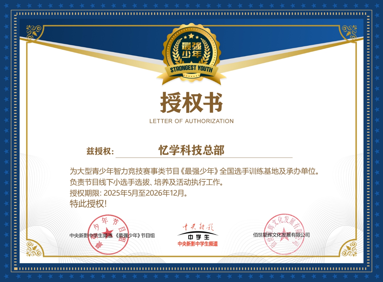 忆学科技与中央新影中学生频道强强联合打造大型青少年竞技赛事《最强少年》节目
