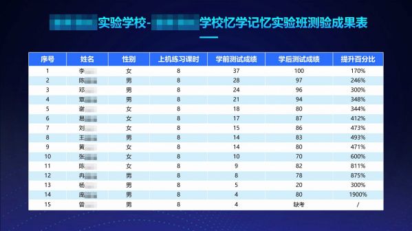 目前,忆学科技解决方案已获全国几十万学员验证,其提分成效在走进公立学校的检测中也获得高度认可。在全国教育高地——忆学科技衡水校区康校长分享,推广忆学科技近一个月来,“记忆+全科”得到了学员及家长高度认可,效果明显,且学员学习积极性特别高。