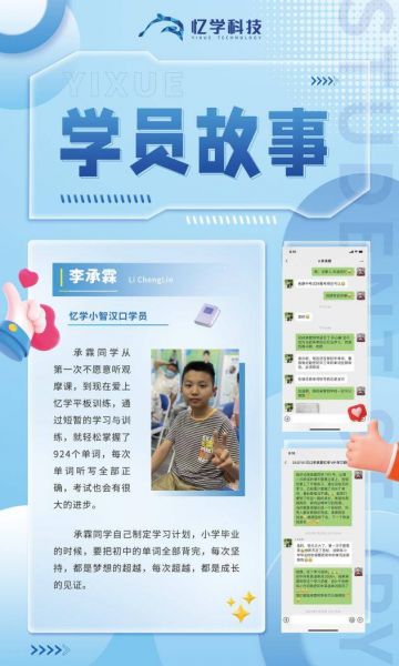 据调查发现,在众多受益学生中,承霖同学的变化令人瞩目。从最初不愿意听观摩课,到如今爱上忆学平板训练,通过短暂学习与训练,轻松掌握924个单词,每次单词听写全部正确,考试成绩也有很大进步。承霖同学还自己制定学习计划,立志小学毕业时背完初中所有单词,每一次坚持都是对梦想的超越,每一次超越都是成长的见证。