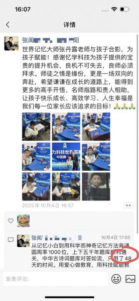 当学习时长延续至48天时,张闻谦同学的成长蜕变更是令人瞩目!他精彩亮相《脑力科技世界联赛・中国赛》,在全国近 300 名参赛选手的激烈角逐中,凭借扎实的知识积累脱颖而出,勇夺《上下五千年历史》单项全场总冠军,成为全场焦点。学业赛场同样交出满分答卷,英语、数学双双斩获100分稳坐班级第一,语文以96分的高分领跑全班,用“赛场+学业”的双重突破,完美诠释了高效学习的无限可能。谈及这段成长经历,他满心感恩:“特别感谢爸妈的支持与忆学老师的悉心指导,是忆学小智让知识学习变得轻松高效,让我在积累中收获满满自信与亮眼成绩!”