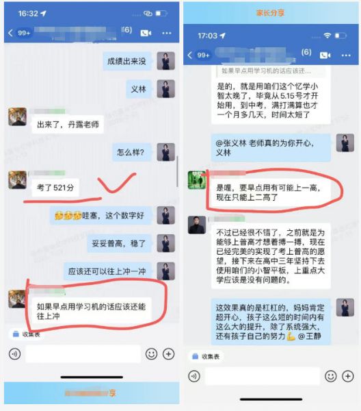 7月放榜日,张义林妈妈第一时间给张丹露老师发来报喜信息:“张老师!总分521分!分数比之前提升了222分,二高的录取通知下来了!孩子说,是忆学小智和老师们让他知道,自己也能行!”这份喜悦,不仅属于张义林和他的家庭,更印证了忆学科技的教育初心——每个孩子都有无限潜能,只是需要科学的方法唤醒。