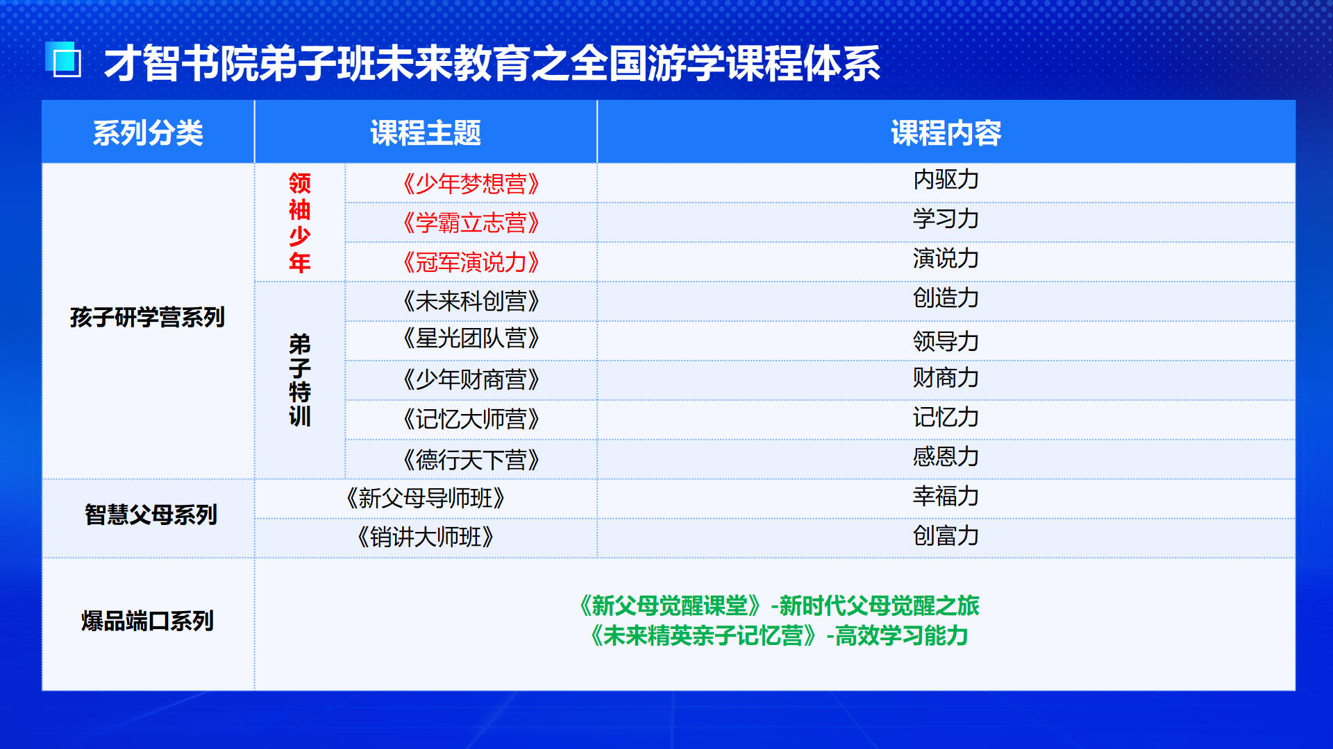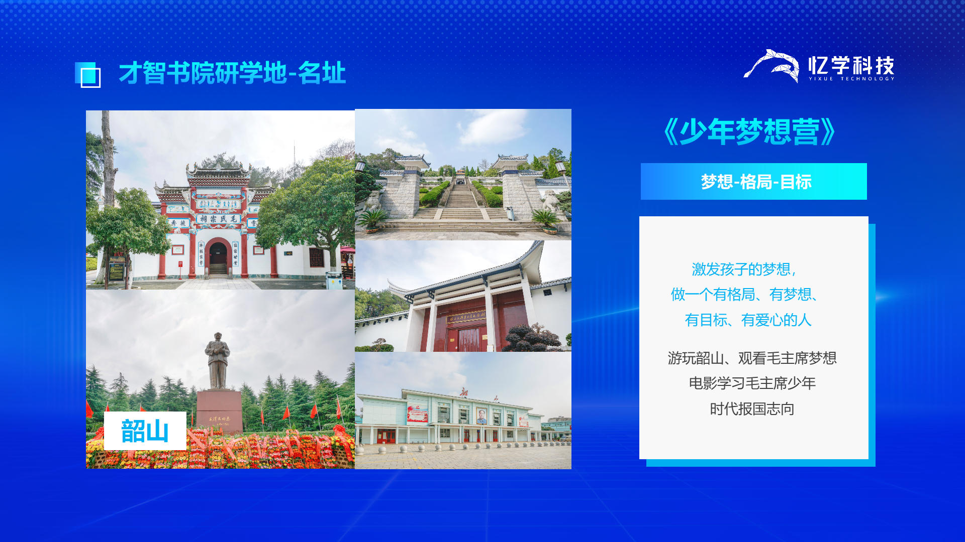 才智书院是由才智集团全力打造致力于未来精英素质培养与家庭教育的学、研、游为一体的高端文旅研学平台,书院以“立德树人、才智双修”为院训,以“育未来领袖、助中华复兴”为宗旨,把爱国主义教育、中国传统文化智慧与现代精英素质相结合,培养“德、慧、才”全面发展的未来国际精英人才,为中华民族伟大复兴及世界和谐发展提供未来储备精英人才。